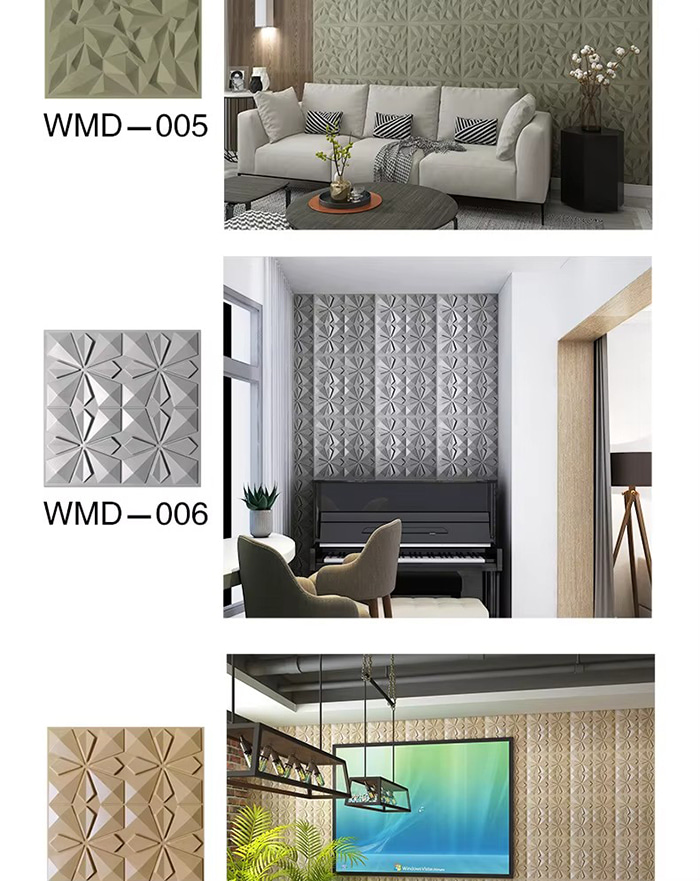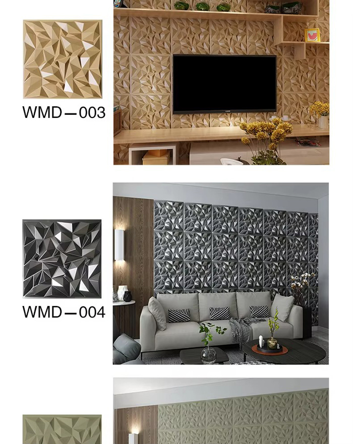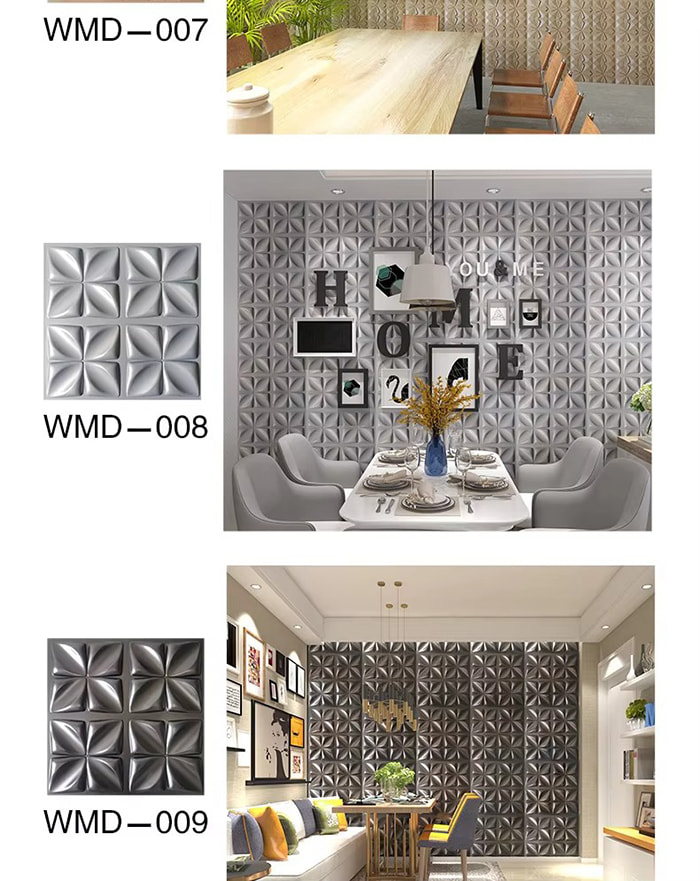 3D duvar panelleri yeni bir dekoratif malzeme türüdür. Kalıp sıcak presleme, gravür ve frezeleme veya CNC baskı yoluyla panellerin yüzeyinde üç boyutlu desenler oluşturulur. Temel malzemeleri PVC, yoğunluk levhası, alüminyum alaşımı, bambu elyafı vb. içerir. PVC'yi örnek alırsak, yüksek moleküler kompozit malzemeler yüksek sıcaklıkta ekstrüde edilir ve yüzey desenleri, minimum içbükey ve dışbükey hassasiyeti 0,1 mm'ye ulaşan hassas çelik kalıplarla preslenir. 3D duvar panelleri üç boyutlu görsel efekte sahiptir. Işık ve gölgenin kırılması ilkesi sayesinde 2 boyutlu düzlem, derinlik hissi ile 3 boyutlu görsel efekte dönüştürülür ve aynı alan altında görsel katmanlama 3 kattan fazla artırılır.