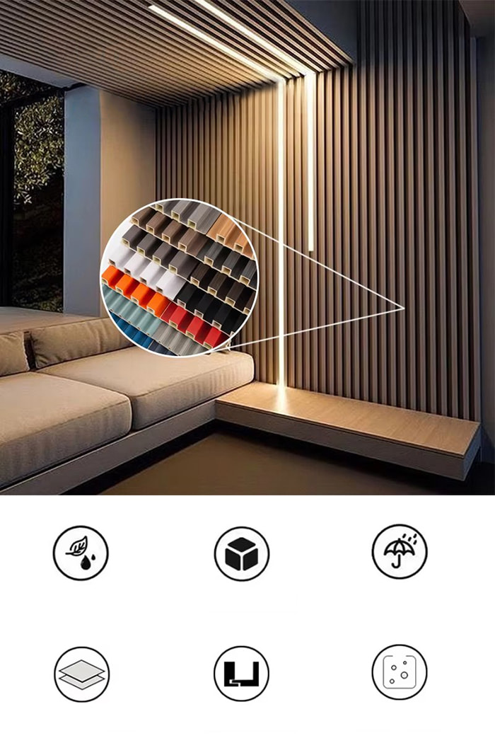 WPC iç mekan panelleri, yüksek sıcaklık ve yüksek basınç işlemi yoluyla PVC reçine, kalsiyum karbonat tozu ve stabilizatör ile birleştirilmiş, çekirdek hammadde olarak ahşap elyafı veya bambu elyafından yapılmış yeni çevre dostu dekoratif panellerdir. Yüzey, doğal ahşap ve taş dokusunu simüle etmek için UV kaplama veya yüksek hassasiyetli transfer teknolojisini benimser ve su geçirmez ve neme dayanıklı, küf geçirmez ve antibakteriyel, hafif ve yüksek mukavemet özelliklerine sahiptir. İç mekan duvarları, tavanlar, arka plan duvarları ve diğer sahneler için uygundur ve geleneksel ahşap kaplamaların ve plastik köşebentlerin yerine geçmek için ideal bir seçimdir.