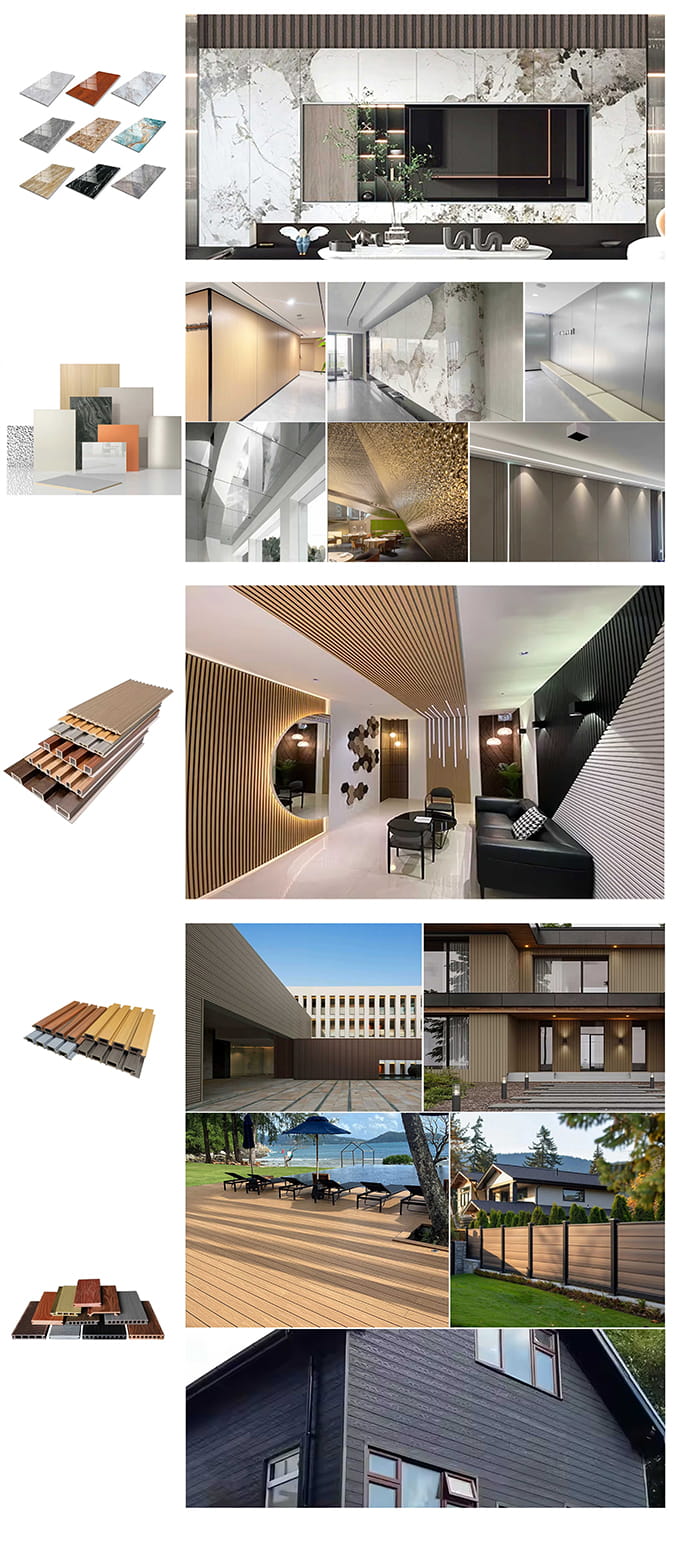 Başlıca ürünlerimiz şunlardır: PVC Tavan Panelleri, PVC Duvar Panelleri, WPC Duvar Panelleri, Sıcak Damgalama Folyosu, PVC Laminasyon Filmi, SPC Döşeme, WPC Zemin Kaplaması ve diğer ilgili ürünler. Yıllık satışlarımız 35 milyon USD'ye kadar çıkabilmektedir.