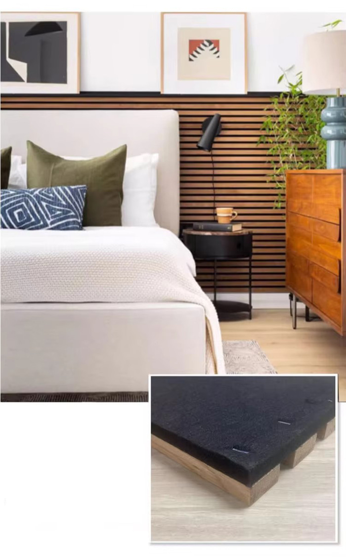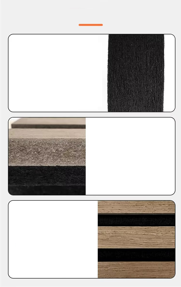 Gözenekli katman: Ahşap elyafı ve ses emici pamuk, ses dalgası emilimini optimize etmek için ≥%30 gözeneklilik ve 0,5-2 mm gözenek boyutu dağılımıyla birleştirilir.